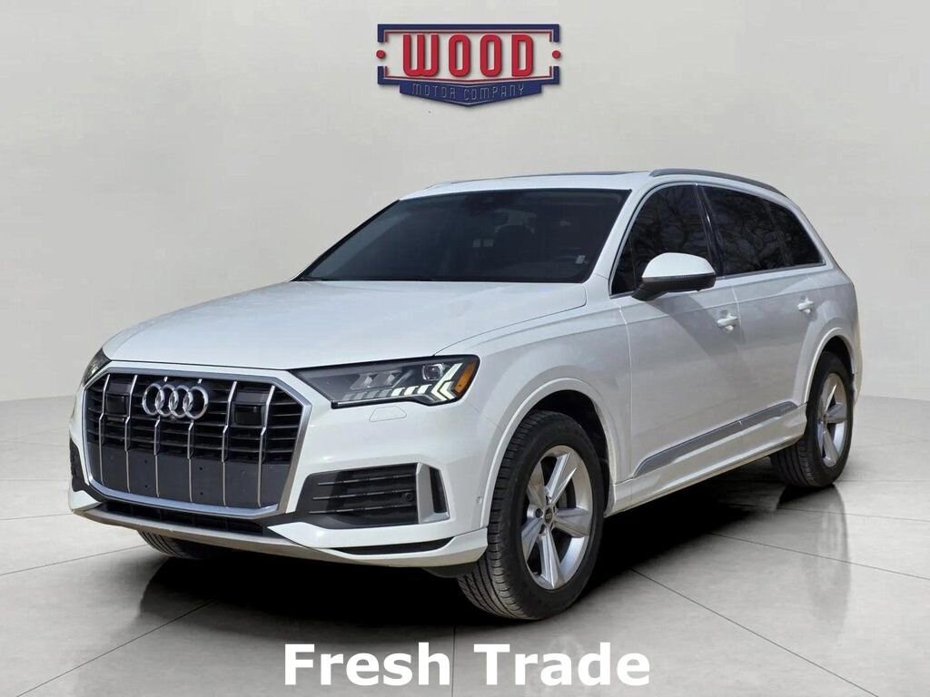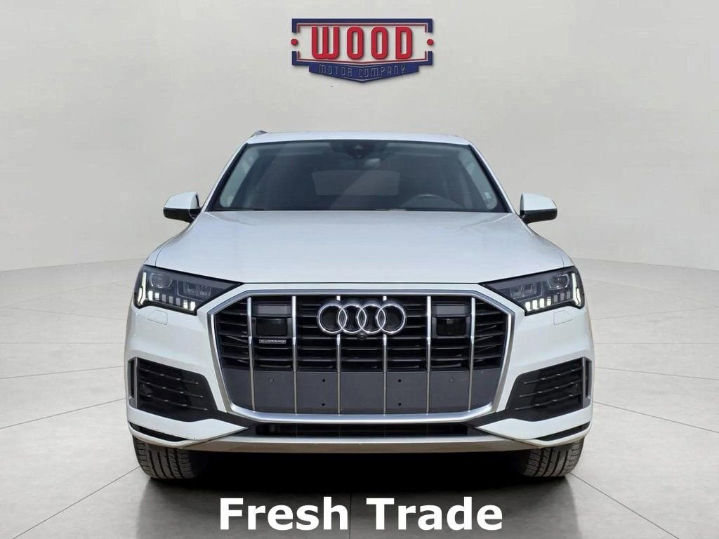 CARFAX One-Owner. Clean CARFAX. Q7 45 Premium Plus quattro, 4D Sport Utility, 2.0L 4-Cylinder TFSI, 8-Speed Automatic with Tiptronic, quattro, Carrara White, Black w/Leather Seating Surfaces, 10 Speakers, 3rd row seats: bench, Air Conditioning, Alloy wheels, AM/FM radio: SiriusXM w/ 360L, Automatic temperature control, Electronic Stability Control, Exterior Parking Camera Rear, Front Bucket Seats, Front dual zone A/C, Heated Front Bucket Seats, Heated front seats, Leather Seating Surfaces, Memory seat, Navigation system: Audi MMI Navigation plus with Touch Response, Power driver seat, Power Liftgate, Power moonroof: Panoramic, Power windows, Radio: Audi Sound System, Rear air conditioning, Reclining 3rd row seat, Remote keyless entry, Security system, Speed control, Steering wheel memory, Steering wheel mounted audio controls, Traction control. Carrara White 2024 Audi Q7 45 Premium Plus quattro quattro 8-Speed Automatic with Tiptronic 2.0L 4-Cylinder TFSI