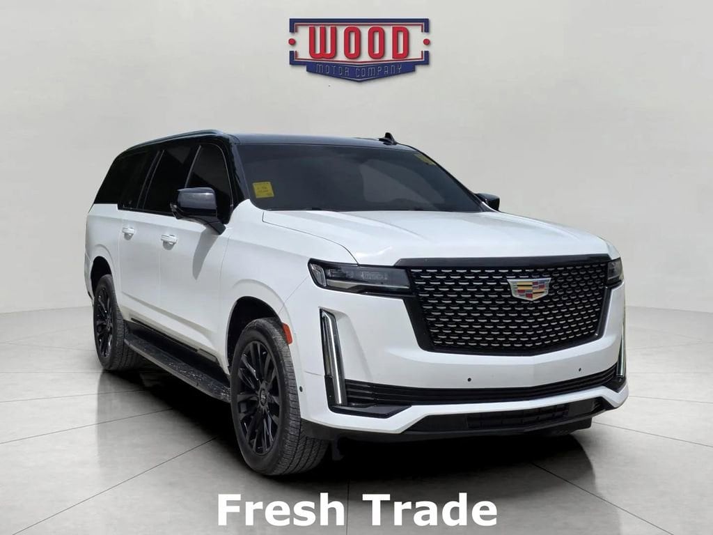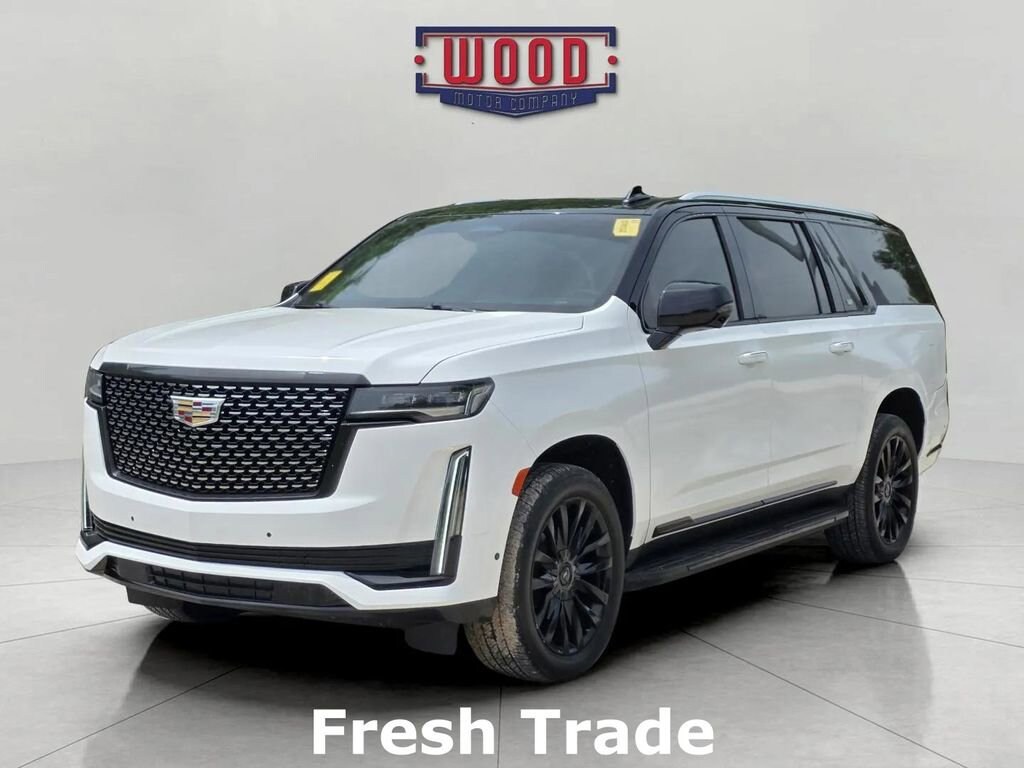 Clean CARFAX. Escalade ESV Premium, 4D Sport Utility, 6.2L V8, 10-Speed Automatic, AWD, Black Raven, Jet Black w/Full Semi-Aniline Leather Seat Trim, 16.9 Diagonal OLED Infotainment Screen, 2-Presets Memory For Driver Seat Adjuster, 3rd row seats: split-bench, 4-Way Power Driver Lumbar Seat Adjuster, 4-Way Power Front Passenger Lumbar Seat Adjuster, 8-Way Power Driver Seat Adjuster, 8-Way Power Front Passenger Seat Adjuster, Adaptive Cruise Control, AKG Studio 19-Speaker Audio System, Apple CarPlay/Android Auto, Automatic Seat Belt Tightening, Automatic temperature control, Door Lock & Latch Shields, Electronic Stability Control, Enhanced Automatic Emergency Braking, Enhanced Automatic Parking Assist, Exterior Parking Camera Rear, Front Bucket Seats, Front dual zone A/C, Fully automatic headlights, Garage door transmitter, Glass Breakage Sensor, HD Radio, Heads-Up Display, Heated & Ventilated Driver & Front Passenger Seats, Heated Driver & Front Passenger Seats, Heated front seats, Heated rear seats, Heated steering wheel, Illuminated entry, Lane Change Alert w/Side Blind Zone Alert, Leather Seating Surfaces w/Mini-Chevron Perf Inserts, Mechanical Limited-Slip Differential, Memory seat, Navigation System, Outside temperature display, Overhead console, Power driver seat, Power Liftgate, Power moonroof, Power Panoramic Tilt-Sliding Sunroof, Power windows, Preferred Equipment Group 1SB, Premium Smooth Ride Suspension, Radio: AM/FM w/Navigation, Rear air conditioning, Rear Camera Mirror, Rear Camera Mirror Washer, Rear Cross Traffic Alert, Reconfigurable Full-Color Head-Up Display, Remote keyless entry, Reverse Automatic Braking, Running Board Assist Steps, SiriusXM w/360L, Split folding rear seat, Steering wheel memory, Steering wheel mounted audio controls, Super Cruise, Teen Driver, Theft-Deterrent Alarm System, Vehicle Inclination Sensor, Vehicle Interior Movement Sensor, Ventilated front seats, Wireless Apple CarPlay/Wireless Android Auto. Black Raven 2023 Cadillac Escalade ESV Premium AWD 10-Speed Automatic 6.2L V8A solid name you can trust... Wood Motor. Recent Arrival!