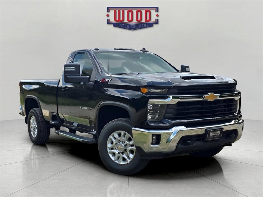 Clean CARFAX. Silverado 3500HD LT, 2D Standard Cab, Duramax 6.6L V8 Turbodiesel, 10-Speed Automatic, 4WD, Black, Black Cloth, 10-Way Power Driver Seat Adjuster w/Lumbar, 120-Volt Bed Mounted Power Outlet, 120-Volt Interior Power Outlet, 170 Amp Alternator, 2-Speed Electronic Shift Transfer Case, 4-Way Manual Driver Seat Adjuster, Apple CarPlay/Android Auto, Black Mirror Caps, Bluetooth® For Phone, Chevrolet Connected Access Capable, Chevytec Spray-On Black Bedliner, Color-Keyed Carpeting Floor Covering, Compass Located In Instrument Cluster, Convenience Package, Deep-Tinted Glass, Dual Rear USB Ports (Charge Only), Dual-Zone Automatic Climate Control, Electric Rear-Window Defogger, EZ Lift Power Lock & Release Tailgate, Front LED Fog Lamps, Front Rubberized Vinyl Floor Mats, Gooseneck/5th Wheel Prep Package, Halogen Reflector Headlamps, HD Rear Vision Camera, Heat Package, Heated Driver & Front Outboard Passenger Seats, Heated Steering Wheel, Heavy Duty Front Spring/Camper Package, Keyless Open & Start, LED Cargo Area Lighting, Manual Tilt-Wheel Steering Column, Manual Tilt-Wheel/Telescoping Steering Column, OnStar & Chevrolet Connected Services Capable, Outside Power-Adjustable Mirrors, Power Door Locks, Power Front Windows w/Driver Express Up/Down, Power Front Windows w/Passenger Express Down, Preferred Equipment Group 1LT, Push Button Start, Remote Start Package, Remote Vehicle Starter System, SiriusXM w/360L, Standard Tailgate, Steering Wheel Audio Controls, Steering Wheel Mounted Electronic Cruise Control, Suspension Package, Unauthorized Entry Theft-Deterrent System, Wi-Fi Hotspot Capable, Wrapped Steering Wheel. Black 2024 Chevrolet Silverado 3500HD LT 4WD 10-Speed Automatic Duramax 6.6L V8 Turbodiesel