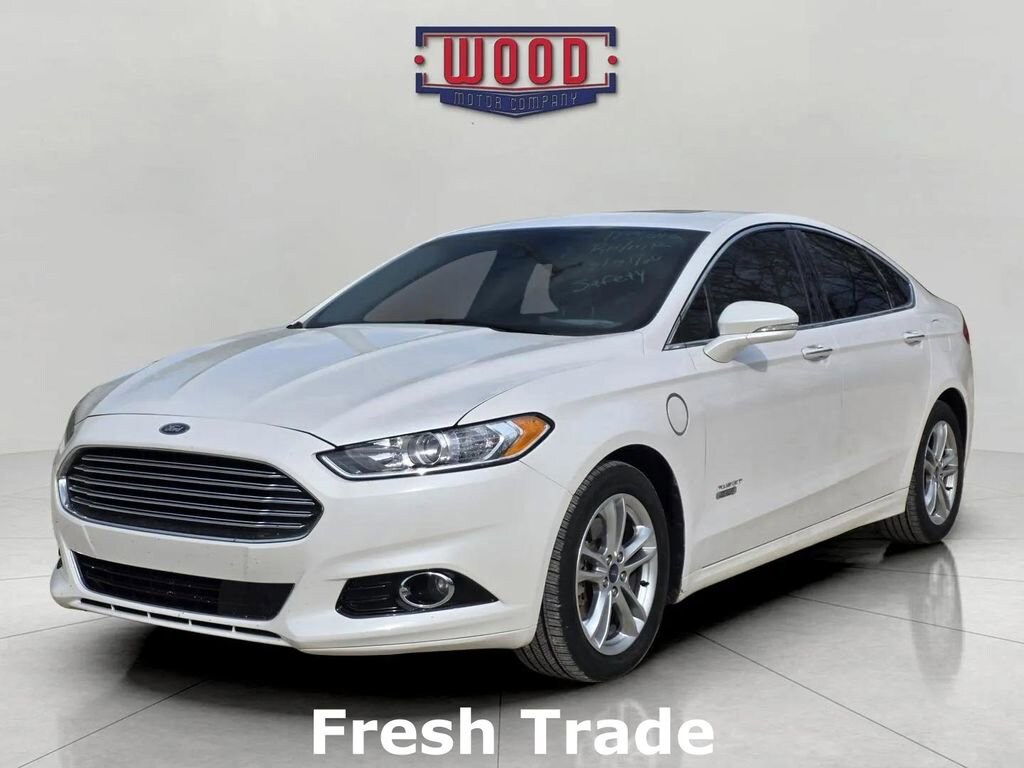 Fusion Energi Titanium, 4D Sedan, 2.0L I4, E-CVT Automatic, FWD, White Platinum Clearcoat Metallic, Medium Soft Ceramic Leather, Adaptive Cruise Control, AM/FM radio: SiriusXM, Auto High Beams, Automatic temperature control, Blind Spot Information System w/Cross Traffic Alert, Cooled Front Seats, Driver Assist Package, Electronic Stability Control, Equipment Group 800A, Exterior Parking Camera Rear, Front Bucket Seats, Front dual zone A/C, Fully automatic headlights, Heated front seats, Lane Keeping System, Power driver seat, Power Moonroof, Power windows, Rain-Sensing Wipers, Rear Parking Sensors, Remote keyless entry, Security system, Split folding rear seat, Steering wheel mounted audio controls, SYNC w/MyFord Touch, Traction control, Universal Garage Door Opener, Variably intermittent wipers, Voice-Activated Navigation. White Platinum Clearcoat Metallic 2016 Ford Fusion Energi Titanium FWD E-CVT Automatic 2.0L I4A solid name you can trust... Wood Motor. Recent Arrival! 40/36 City/Highway MPGAwards:* 2016 KBB.com Brand Image AwardsReviews:* Useful all-electric driving range; many advanced technology and safety features available; relatively sharp handling; composed ride; quiet cabin; eye-catching style. Source: Edmunds