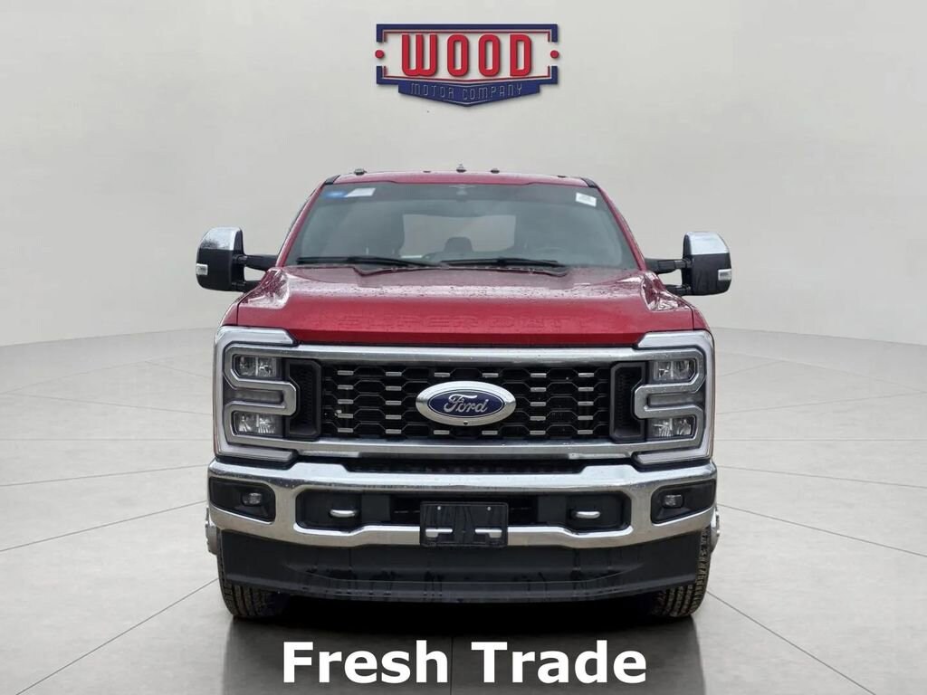 F-350 SuperDuty Lariat DRW, 4D Crew Cab, Power Stroke 6.7L V8 DI 32V OHV Turbodiesel, 10-Speed Automatic, 4WD, Rapid Red Metallic Tinted Clearcoat, Baja w/Front Leather-Trimmed 40/20/40 Split Bench Seat, 410 Amp Dual Alternators, Air Conditioning, Automatic temperature control, Chrome Door Handles, Chrome Exhaust Tip, Chrome Package, Delay-off headlights, Front Bucket Seats, Front dual zone A/C, Front reading lights, Fully automatic headlights, FX4 Off-Road Package, Heated door mirrors, Heated front seats, Heated rear seats, Hill Descent Control, Illuminated entry, Limited Slip w/4.10 Axle Ratio, Navigation system: Connected Navigation, Off-Road Specifically Tuned Shock Absorbers, Order Code 628A, Power passenger seat, Power windows, Radio: B&O Unleashed Sound System by Bang & Olufsen, Remote keyless entry, SiriusXM Radio w/360L, Snow Plow Prep Package, Steering wheel mounted audio controls, SYNC 4 w/Enhanced Voice Recognition, Telescoping steering wheel, Tilt steering wheel, Trip computer, Unique Chrome Mirror Caps, Unique FX4 Off-Road Box Decal, Wireless Charging Pad. Rapid Red Metallic Tinted Clearcoat 2023 Ford F-350SD Lariat DRW 4WD 10-Speed Automatic Power Stroke 6.7L V8 DI 32V OHV TurbodieselA solid name you can trust... Wood Motor. Recent Arrival!
