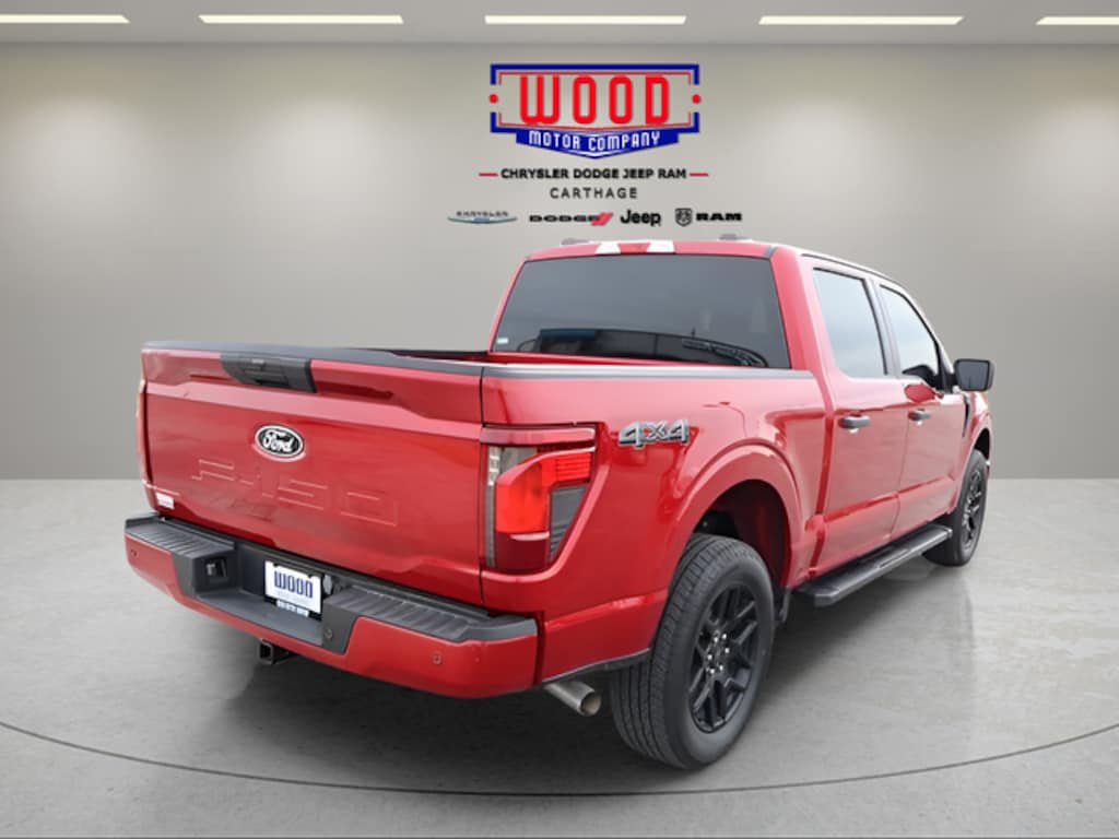 Rapid Red Metallic Tinted Clearcoat 2024 Ford F-150 STX 4WD 10-Speed Automatic 5.0L V8 4WD, 6" Black Running Boards, Air Conditioning, AM/FM radio: SiriusXM with 360L, Auto High-beam Headlights, Black Exterior Badging, Brake assist, Bumpers: body-color, Compass, Delay-off headlights, Driver door bin, Electronic Locking w/3.73 Axle Ratio, Electronic Stability Control, Equipment Group 200A Standard, Front Bucket Seats, Front Center Armrest, Front fog lights, Front reading lights, Fully automatic headlights, Gray Box Side Decal, GVWR: 6,650 lbs Payload Package, Heated door mirrors, Illuminated entry, Low tire pressure warning, Navigation system: Connected Navigation, Outside temperature display, Overhead console, Panic alarm, Passenger door bin, Passenger vanity mirror, Power door mirrors, Power steering, Power windows, Radio data system, Radio: AM/FM SiriusXM w/360L, Rear step bumper, Rear window defroster, Remote keyless entry, Security system, Speed control, Split folding rear seat, Steering wheel mounted audio controls, STX Black Appearance Package, SYNC 4 w/Enhanced Voice Recognition, Tachometer, Telescoping steering wheel, Tilt steering wheel, Trip computer, Unique Sport Cloth 40/Console/40 Front-Seats, Variably intermittent wipers, Voltmeter, Wheels: 20" Dark Gray w/Machined Aluminum, Wheels: 20" Gloss Black.