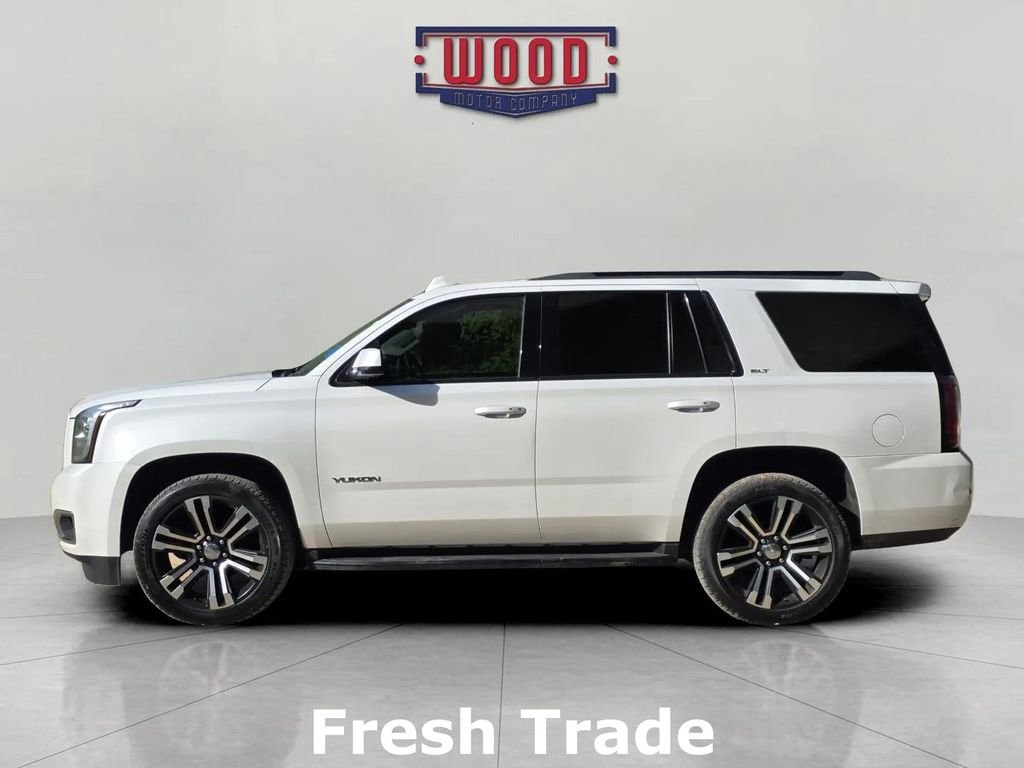 CARFAX One-Owner. Yukon SLT, 4D Sport Utility, EcoTec3 5.3L V8, 6-Speed Automatic Electronic with Overdrive, 4WD, White Frost Tricoat, Jet Black w/Leather-Appointed Seat Trim, 3.42 Rear Axle Ratio, 3rd row seats: split-bench, 4-Wheel Antilock Disc Brakes, 5 Auxiliary 12-volt Power Outlets, Adjustable pedals, Apple CarPlay/Android Auto, Automatic temperature control, Black Assist Steps w/Chrome Strip, Black Assist Steps w/Gloss Black Accents, Bose Premium 9-Speaker System, CD Player, Electronic Stability Control, Enhanced Driver Alert Package, Exterior Parking Camera Rear, Forward Collision Alert, Front Bucket Seats, Front dual zone A/C, Full-Feature Reclining Bucket Seats, Fully automatic headlights, Garage door transmitter, Graphite Edition, Hands Free Power Programmable Rear Liftgate, HD Trailering Package, Heated & Ventilated Driver & Front Passenger Seats, Heated door mirrors, Heated front seats, Heated Leather-Wrapped Steering Wheel, Heated rear seats, Heated steering wheel, Illuminated entry, Inside Rear-View Auto-Dimming Mirror, Integrated Trailer Brake Controller, IntelliBeam Automatic High Beam On/Off, Lane Change Alert w/Side Blind Zone Alert, Lane Keep Assist w/Lane Departure Warning, Low Speed Forward Automatic Braking, Memory Package, Memory seat, Open Road Package, Outside temperature display, Passive Entry System, Perforated Leather-Appointed Seat Trim, Power door mirrors, Power driver seat, Power passenger seat, Power Release 2nd Row 60/40 Split-Folding Bench Seat, Power Tilt & Telescopic Steering Column, Power Tilt-Sliding Sunroof w/Express-Open/Close, Power windows, Power-Adjustable Pedals For Accelerator & Brake, Preferred Equipment Group 4SA, Premium Smooth Ride Suspension Package, Push Button Keyless Start, Radio: AM/FM/SiriusXM w/Navigation, Rear air conditioning, Rear Cross Traffic Alert, Rear Seat Blu-Ray/DVD Entertainment System, Remote Keyless Entry, Remote keyless entry, SiriusXM NavTraffic, SiriusXM Radio, Speed control, Standard Suspension Package, Steering wheel memory, Steering wheel mounted audio controls, Telescoping steering wheel, Tilt steering wheel, Traction control, Turn signal indicator mirrors, Universal Home Remote, Variably intermittent wipers, Ventilated front seats. White Frost Tricoat 2019 GMC Yukon SLT 4WD 6-Speed Automatic Electronic with Overdrive EcoTec3 5.3L V8A solid name you can trust... Wood Motor. Recent Arrival! Odometer is 23351 miles below market average!