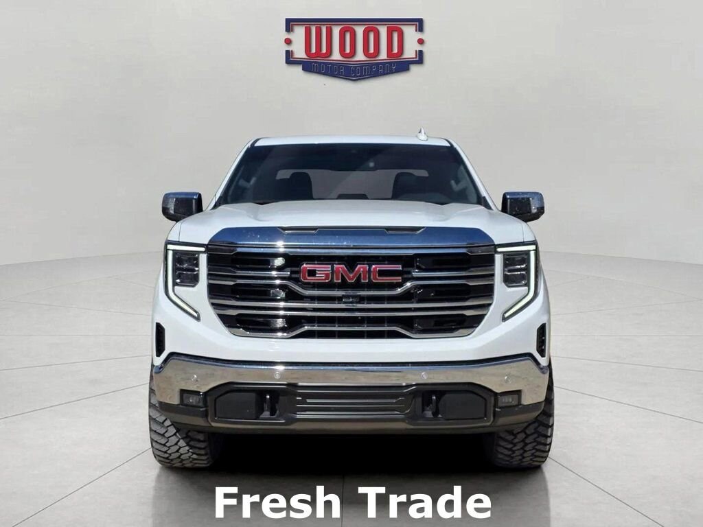CARFAX One-Owner. Clean CARFAX. Sierra 1500 SLT, 4D Crew Cab, EcoTec3 5.3L V8, 10-Speed Automatic, 4WD, Summit White, Jet Black w/Leather-Appointed Seat Trim, 10-Way Power Driver Seat Adjuster w/Lumbar, 10-Way Power Passenger Seat Adjuster w/Lumbar, 120-Volt Bed Mounted Power Outlet, 120-Volt Interior Power Outlet, 170 Amp Alternator, 2 Charge/Data USB Ports, 2 Charge/Data USB Ports Inside Center Console, 2 Type-C Charge-Only Rear USB Ports, 20 Polished Aluminum Wheels, 6-Speaker Audio System Feature, Adaptive Cruise Control, All-Weather Floor Liner (LPO), Auto-Locking Rear Differential, Automatic temperature control, Auxiliary External Transmission Oil Cooler, Chrome Header & Chrome Grille Insert Bars, Chrome Wheel To Wheel Assist Steps, Color-Keyed Carpeting Floor Covering, Deep-Tinted Glass, Dual Exhaust System, Electric Rear-Window Defogger, Electronic Precision Shift, Electronic Stability Control, Floor-Mounted Center Console, Front Bucket Seats, Front dual zone A/C, Front Frame-Mounted Black Recovery Hooks, Front Rain-Sensing Wipers, Fully automatic headlights, GMC Connected Access Capable, HD Rear Vision Camera, HD Surround Vision, Heated 2nd Row Outboard Seats, Heated Driver & Front Outboard Passenger Seating, Heated front seats, Heavy-Duty Air Filter, High Capacity Suspension Package, Hill Descent Control, Hitch Guidance, Hitch View, In-Vehicle Trailering System App, Integrated Trailer Brake Controller, Keyless Open & Start, LED Cargo Area Lighting, Manual Tilt-Wheel & Telescoping Steering Column, Memory seat, Navigation System, Off-Road Suspension, OnStar & GMC Connected Services Capable, Outside temperature display, Perf Leather-Appointed Front Outboard Seat Trim, Perimeter Lighting, Power Door Locks, Power driver seat, Power Front Passenger Windows w/Express Up/Down, Power Front Windows w/Driver Express Up/Down, Power passenger seat, Power Rake & Telescoping Steering Column, Power Rear Windows w/Express Down, Power Sliding Rear Window w/Rear Defogger, Power Sunroof, Power windows, Preferred Equipment Group 4SA, Premium Bose 7-Speaker Sound System, ProGrade Trailering System, Push Button Start, Rear Cross Traffic Braking, Rear Pedestrian Detection, Rear Wheelhouse Liners, Remote keyless entry, Remote Vehicle Starter System, Safety Alert Seat, Security system, Sierra Safety Plus Package, SiriusXM w/360L, SLT Convenience Package, SLT Preferred Package, SLT Premium Plus Package, Spray-On Pickup Bedliner w/GMC Logo, Standard Suspension Package, Steering Wheel Audio Controls, Steering wheel mounted audio controls, Telescoping steering wheel, Theft Deterrent System (Unauthorized Entry), Tilt steering wheel, Traction control, Trailer Camera Provisions, Trailer Side Blind Zone Alert, Trailering Package, Ultrasonic Front & Rear Park Assist, Universal Home Remote, Ventilated Driver & Front Passenger Seats, Wheels: 20 Polished Aluminum w/RFX, Wi-Fi Hotspot Capable, Wireless Apple CarPlay/Wireless Android Auto, Wireless Charging, X31 Hard Badge, X31 Off-Road & Protection Package, X31 Off-Road Package. Summit White 2024 GMC Sierra 1500 SLT 4WD 10-Speed Automatic EcoTec3 5.3L V8A solid name you can trust... Wood Motor. Recent Arrival! Odometer is 12602 miles below market average!