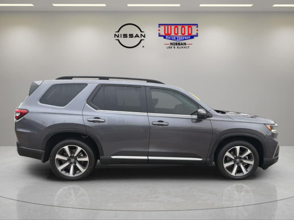 AWD, 3rd row seats: split-bench, Adaptive Cruise Control: Adaptive Cruise Control (ACC) with Low-Speed Follow, Apple CarPlay/Android Auto, Automatic temperature control, Blind Spot Information (BSI) System warning, Bose Premium Sound System, Front dual zone A/C, Heads-Up Display, Heated front seats, Heated rear seats, Honda Satellite-Linked Navigation System, HondaLink Subscription Services, Lane departure: Lane Keeping Assist System (LKAS) active, Navigation system: Honda Satellite-Linked Navigation System, Power Liftgate, Power moonroof, SiriusXM, Ventilated front seats, Wheels: 20" Shark Gray Machine Face with Black Lug Nuts, 12 Speakers, 4-Wheel Disc Brakes, 4.167 Axle Ratio, ABS brakes, Air Conditioning, Alloy wheels, AM/FM radio: SiriusXM, Auto High-beam Headlights, Auto-dimming door mirrors, Auto-dimming Rear-View mirror, Brake assist, Bumpers: body-color, Compass, Delay-off headlights, Driver door bin, Driver vanity mirror, Dual front impact airbags, Dual front side impact airbags, Electronic Stability Control, Emergency communication system: HondaLink, Exterior Parking Camera Rear, Four wheel independent suspension, Front anti-roll bar, Front Bucket Seats, Front Center Armrest, Front fog lights, Front reading lights, Fully automatic headlights, Garage door transmitter: HomeLink, Heated and Ventilated Front Bucket Seats, Heated door mirrors, Heated steering wheel, Illuminated entry, Knee airbag, Low tire pressure warning, Memory seat, Occupant sensing airbag, Outside temperature display, Overhead airbag, Overhead console, Panic alarm, Passenger door bin, Passenger vanity mirror, Perforated Leather Seat Trim, Power door mirrors, Power driver seat, Power passenger seat, Power steering, Power windows, Radio data system, Rain sensing wipers, Rear air conditioning, Rear anti-roll bar, Rear reading lights, Rear seat center armrest, Rear window defroster, Rear window wiper, Reclining 3rd row seat, Remote keyless entry, Security system, Speed control, Speed-sensing steering, Speed-Sensitive Wipers, Split folding rear seat, Spoiler, Steering wheel mounted audio controls, Tachometer, Telescoping steering wheel, Tilt steering wheel, Traction control, Trip computer, Turn signal indicator mirrors, and Variably intermittent wipers.