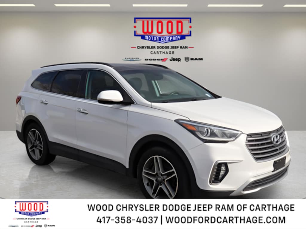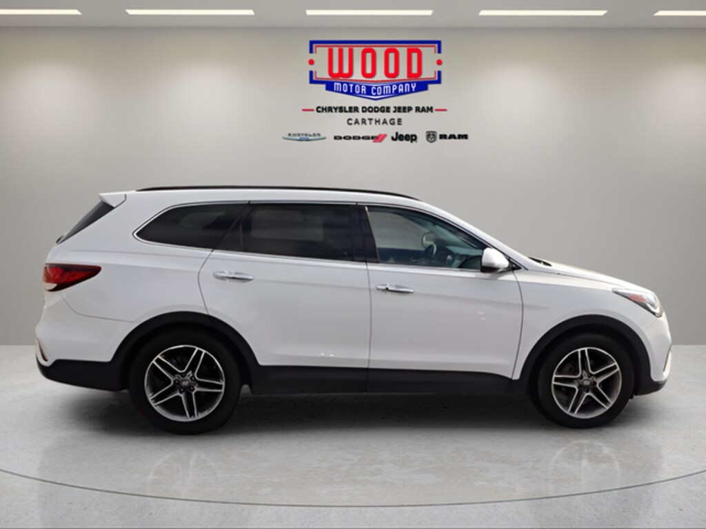 Monaco White 2018 Hyundai Santa Fe SE Ultimate AWD 6-Speed Automatic with Shiftronic 3.3L V6 DGI DOHC 24V AWD, Black Leather, 19" Alloy Wheels, 3.041 Axle Ratio, 3rd row seats: split-bench, Air Conditioning, Automatic temperature control, Brake assist, Bumpers: body-color, Compass, Delay-off headlights, Driver door bin, Driver vanity mirror, Electronic Stability Control, Exterior Parking Camera Rear, Front Bucket Seats, Front Center Armrest, Front dual zone A/C, Front fog lights, Front reading lights, Fully automatic headlights, Garage door transmitter: HomeLink, Heated & Ventilated Front Bucket Seats, Heated door mirrors, Heated front seats, Heated rear seats, Heated steering wheel, Illuminated entry, Leather Seating Surfaces, Leather steering wheel, Memory seat, Navigation System, Option Group 01, Outside temperature display, Overhead console, Panic alarm, Passenger door bin, Passenger vanity mirror, Power driver seat, Power Liftgate, Power moonroof, Power passenger seat, Power steering, Power windows, Rear Parking Sensors, Rear seat center armrest, Rear window defroster, Rear window wiper, Remote keyless entry, Security system, Speed control, Split folding rear seat, Steering wheel mounted audio controls, Tachometer, Telescoping steering wheel, Tilt steering wheel, Trip computer, Variably intermittent wipers, Ventilated front seats.
