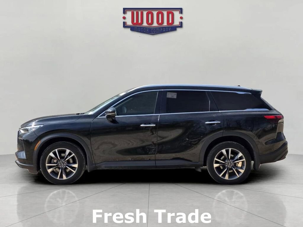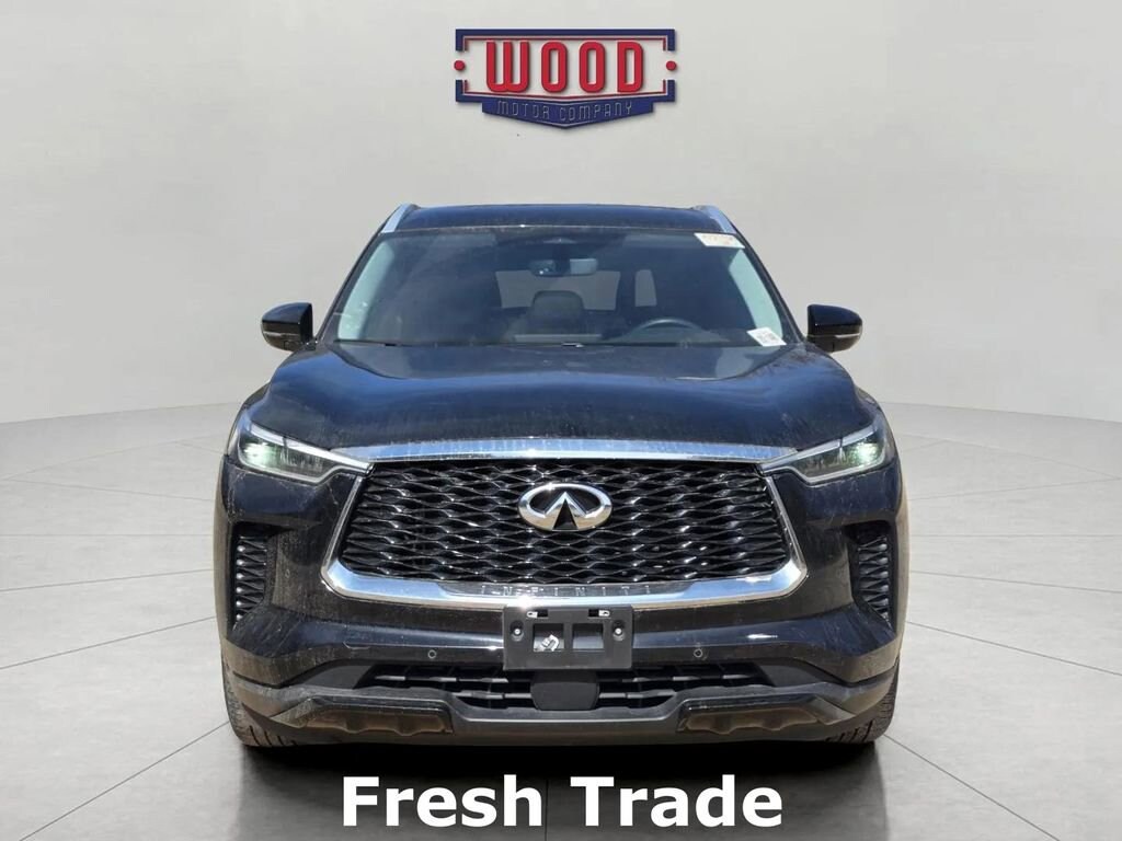 CARFAX One-Owner. Clean CARFAX. QX60 LUXE, 4D Sport Utility, 3.5L V6 DOHC 24V, 9-Speed Automatic, AWD, Mineral Black, Graphite w/Semi Aniline Leather-Appointed Seating Surfaces, 3rd row seats: bench, AM/FM radio: SiriusXM, Apple CarPlay/Android Auto, Automatic temperature control, Electronic Stability Control, Exterior Parking Camera Rear, Front dual zone A/C, Fully automatic headlights, Garage door transmitter: HomeLink, Heated door mirrors, Heated steering wheel, Leather-Appointed Seating Surfaces, Memory seat, Navigation system: INFINITI InTouch Navigation, Outside temperature display, Power driver seat, Power Liftgate, Power moonroof, Power windows, Radio: AM/FM Audio System, Rear air conditioning, Rear reading lights, Rear seat center armrest, Reclining 3rd row seat, Remote keyless entry, Security system, Speed control, Steering wheel memory, Steering wheel mounted audio controls, Telescoping steering wheel, Tilt steering wheel, Ventilated front seats, Wheels: 20 x 8J Sporty Machined Aluminum Alloy. Mineral Black 2024 INFINITI QX60 LUXE AWD 9-Speed Automatic 3.5L V6 DOHC 24V