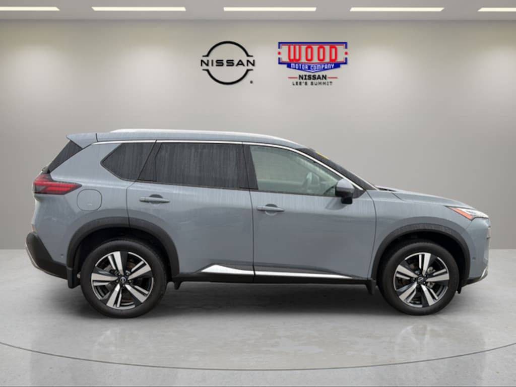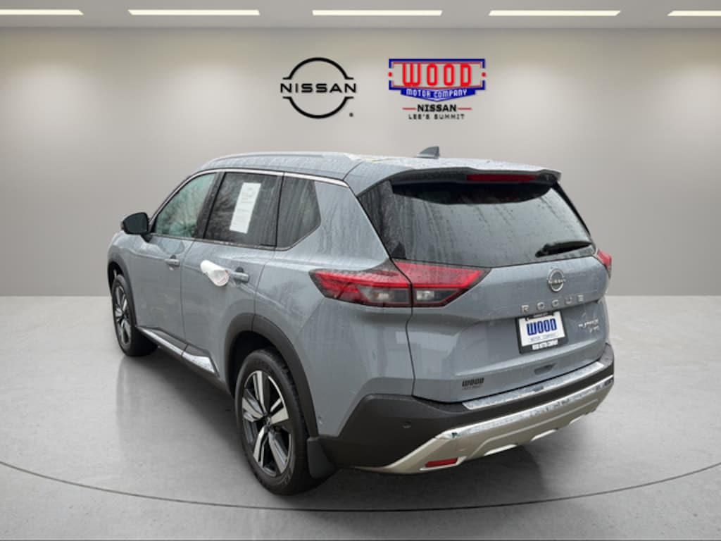 AWD, Platinum Premium Package, 19" Aluminum Alloy Wheels, Automatic temperature control, Bose Premium Audio System, Front dual zone A/C, Heads-Up Display, Heated Front Bucket Seats, NissanConnect featuring Apple CarPlay and Android Auto, Power Liftgate, Power moonroof, Rear Heated Seats, Tri-Zone HVAC. Boulder Gray Pearl 2023 Nissan Rogue Platinum AWD CVT with Xtronic 1.5L I3 Turbocharged DOHC 12V LEV3-ULEV50 201hp