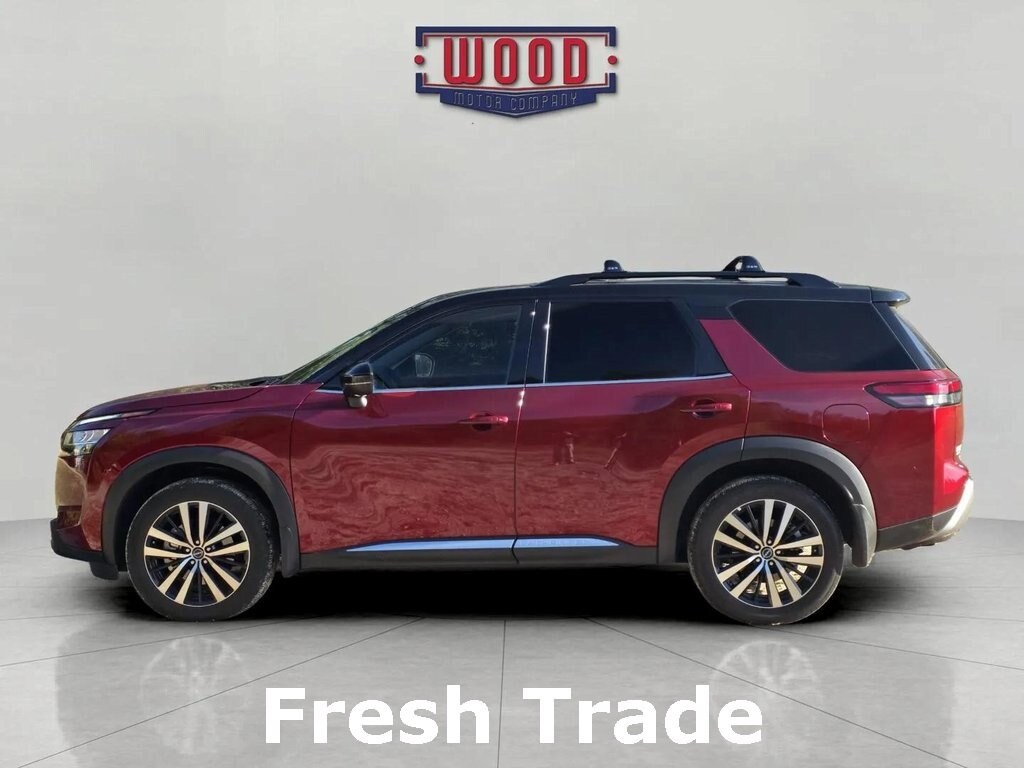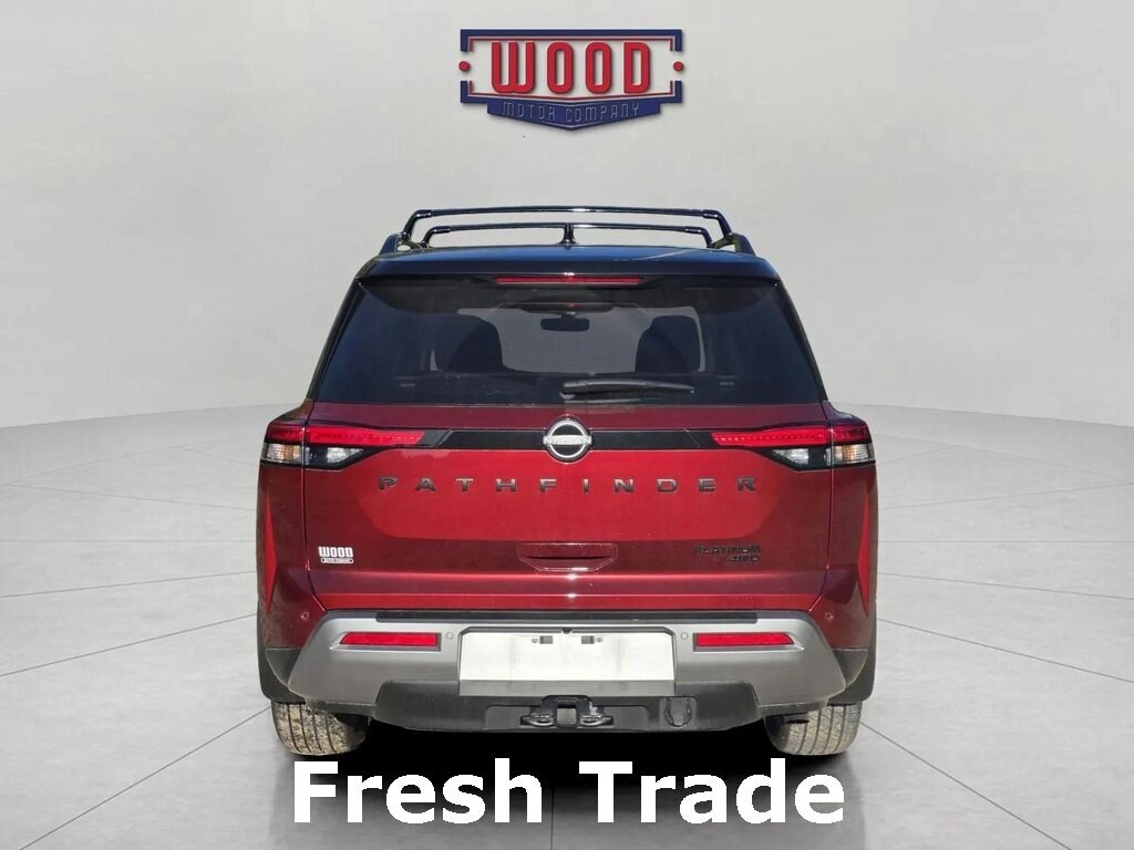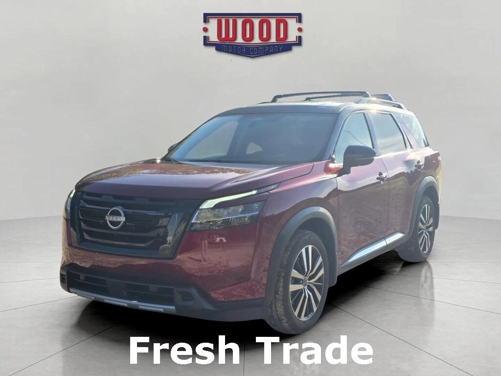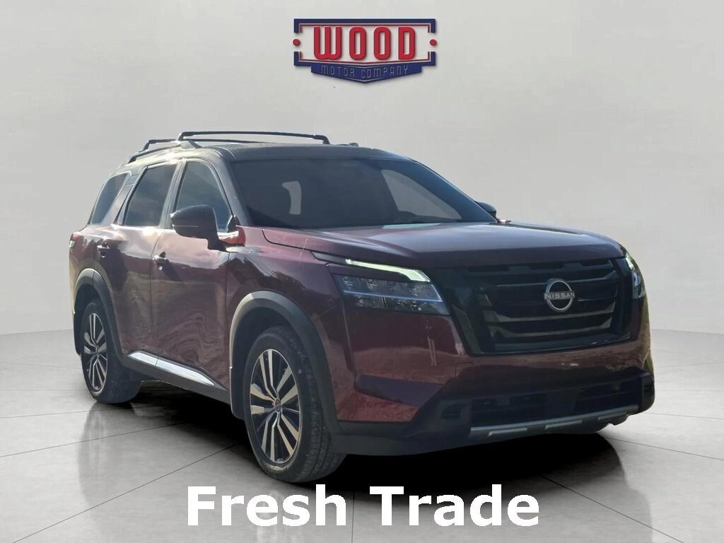 CARFAX One-Owner. Clean CARFAX. Pathfinder Platinum, 4D Sport Utility, 3.5L V6 DOHC, 9-Speed Automatic, 4WD, Scarlet Ember Tintcoat/Super Black, Chestnut w/Semi-Aniline Leather-Appointed Seating Surfaces, 2nd-Row Captain Chairs, 2nd-Row Rear Headrest, 3rd row seats: bench, Automatic temperature control, Black Appearance Package, Black Grille (K10), Black Liftgate Emblems, Bose Premium Audio System, Electronic Stability Control, Exterior Parking Camera Rear, Front Bucket Seats, Front dual zone A/C, Fully automatic headlights, Heads-Up Display, Heated & Cooled Front Bucket Seats, Heated front seats, Heated rear seats, Memory seat, Navigation system: NissanConnect with Navigation and Services, NissanConnect featuring Apple CarPlay and Android Auto, Platinum Captain Chairs Package, Power driver seat, Power Liftgate, Power moonroof, Power passenger seat, Power windows, Rear air conditioning, Reclining 3rd row seat, Remote keyless entry, Security system, Semi-Aniline Leather-Appointed Seating Surfaces, Split folding rear seat, Steering wheel memory, Steering wheel mounted audio controls, Ventilated front seats. Scarlet Ember Tintcoat/Super Black 2024 Nissan Pathfinder Platinum 4WD 9-Speed Automatic 3.5L V6 DOHCA solid name you can trust... Wood Motor. Recent Arrival!