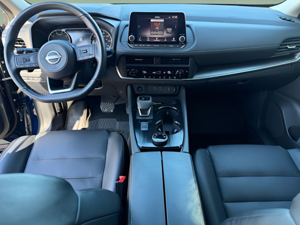 AWD, SV Premium Package, Automatic temperature control, Front dual zone A/C, Heated Front Seats, Heated Leather-Wrapped Steering Wheel, Leatherette Door Trim Inserts w/Stitch, NissanConnect featuring Apple CarPlay and Android Auto, Panoramic Moonroof, Power Liftgate, Prima-Tex Leatherette Seat Trim w/Perforation, Radio: AM/FM NissanConnect, Rear Door Sunshades, Rear Parking Sensors, Rear Personal Lights, Silver Painted Roof Rails, Wheels: 18" Dark Painted Machine Finished Alloy. Deep Ocean Blue Pearl 2024 Nissan Rogue SV AWD CVT with Xtronic 1.5L DOHC