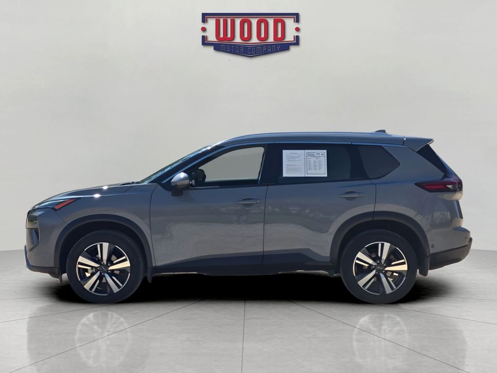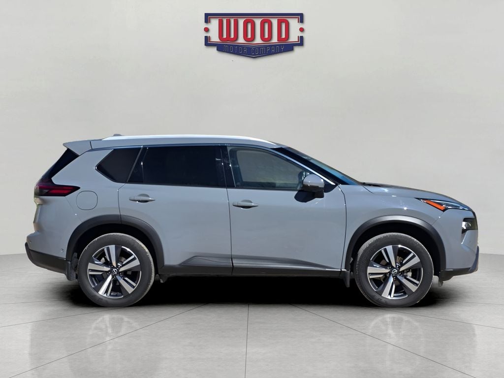 CARFAX One-Owner. Clean CARFAX. Rogue SL, 4D Sport Utility, 1.5L DOHC, CVT with Xtronic, AWD, Boulder Gray Pearl, Charcoal Leather, Android Auto and Apple CarPlay, Automatic temperature control, Electronic Stability Control, Front Bucket Seats, Front dual zone A/C, Fully automatic headlights, Garage door transmitter: myQ Connected Garage, Heated Front Bucket Seats with 8-Way Power Driver Seat and 4-Way Power Passenger Seat, Heated steering wheel, Illuminated entry, Leather-Appointed Seat Trim, Navigation system: NissanConnect with Navigation and Services, Outside temperature display, Power driver seat, Power Liftgate, Power windows, Radio: NissanConnect with Navigation and 6 Speakers, Remote keyless entry, Security system, Steering wheel mounted audio controls, Telescoping steering wheel, Tilt steering wheel, Traction control, Wheels: 19" Dark Painted Machine Finished Alloy. Boulder Gray Pearl 2025 Nissan Rogue SL AWD CVT with Xtronic 1.5L DOHC