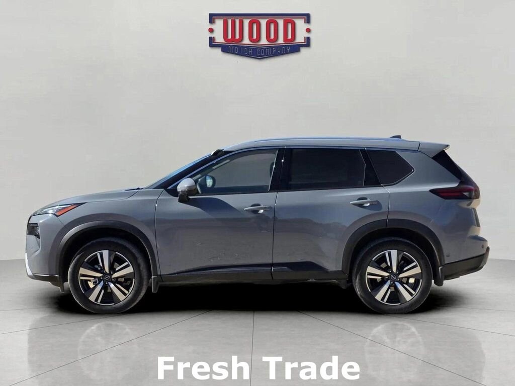 CARFAX One-Owner. Rogue SL, 4D Sport Utility, 1.5L DOHC, CVT with Xtronic, AWD, Boulder Gray Pearl, Charcoal Leather, Android Auto and Apple CarPlay, Automatic temperature control, Electronic Stability Control, Front Bucket Seats, Front dual zone A/C, Fully automatic headlights, Garage door transmitter: myQ Connected Garage, Heated Front Bucket Seats with 8-Way Power Driver Seat and 4-Way Power Passenger Seat, Heated steering wheel, Illuminated entry, Leather-Appointed Seat Trim, Navigation system: NissanConnect with Navigation and Services, Outside temperature display, Power driver seat, Power Liftgate, Power windows, Radio: NissanConnect with Navigation and 6 Speakers, Remote keyless entry, Security system, Steering wheel mounted audio controls, Telescoping steering wheel, Tilt steering wheel, Traction control, Wheels: 19 Dark Painted Machine Finished Alloy. Boulder Gray Pearl 2025 Nissan Rogue SL AWD CVT with Xtronic 1.5L DOHCA solid name you can trust... Wood Motor. 28/34 City/Highway MPG