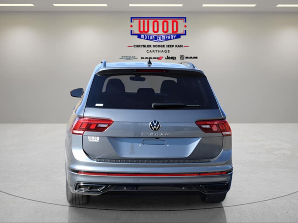 Gray 2023 Volkswagen Tiguan 2.0T SE R-Line Black FWD 8-Speed Automatic with Tiptronic 2.0L TSI DOHC 3.33 Axle Ratio, 4-Wheel Independent Suspension, 6 Speakers, Air Conditioning, Alloy wheels, AM/FM radio: SiriusXM with 360L, Auto-dimming Rear-View mirror, Automatic temperature control, Brake assist, Bumpers: body-color, Compass, Delay-off headlights, Driver door bin, Driver vanity mirror, Electronic Stability Control, Exterior Parking Camera Rear, Four wheel independent suspension, Front Bucket Seats, Front Center Armrest, Front dual zone A/C, Front reading lights, Fully automatic headlights, Heated door mirrors, Illuminated entry, Leather Shift Knob, Leather steering wheel, Low tire pressure warning, Outside temperature display, Overhead console, Panic alarm, Passenger door bin, Passenger vanity mirror, Power door mirrors, Power driver seat, Power Liftgate, Power moonroof, Power steering, Power windows, Radio data system, Radio: MIB3 Composition Media AM/FM/HD, Rain sensing wipers, Rear reading lights, Rear seat center armrest, Rear window defroster, Rear window wiper, Remote keyless entry, Security system, Speed control, Speed-sensing steering, Spoiler, Sport steering wheel, Steering wheel mounted audio controls, Tachometer, Telescoping steering wheel, Tilt steering wheel, Traction control, Trip computer, Turn signal indicator mirrors, Variably intermittent wipers, Wheels: 19" Black Painted Twin 5-Spoke Alloy.